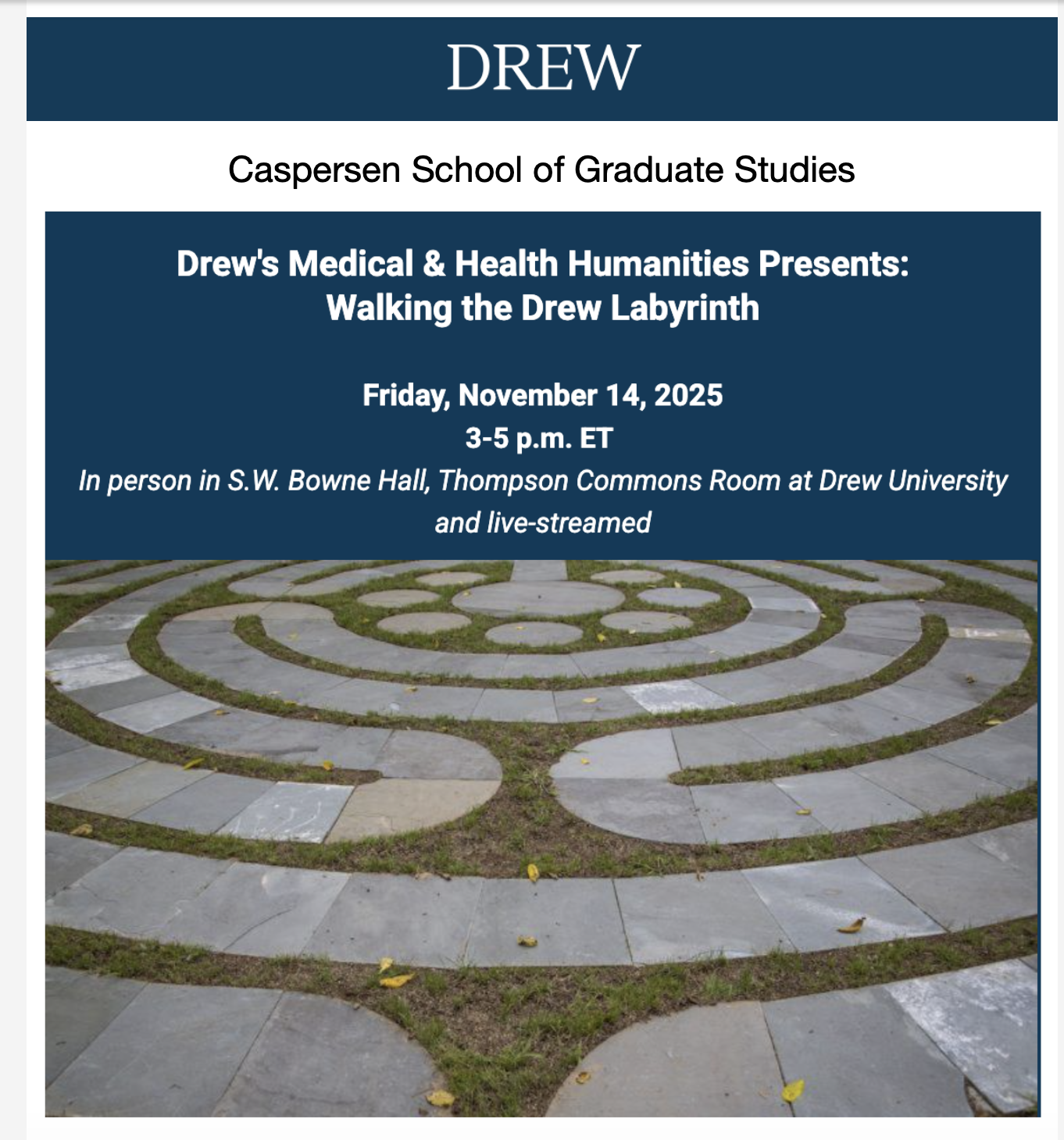 Students and faculty in Drew University’s Health and Medical Humanities graduate program gathered for Walking the Drew Labyrinth, an event blending contemplative learning, embodied practice, and reflection.